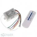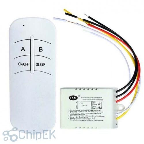 Modul je primeren v vseh primerih kjer je potreben vklop naprav na razdaljo z daljincem. Ima dva ločena kanala s katerima prižiga vsako napravo posebej (tipka A in B) ali skupaj (tipka ON/OFF) - enokanalna izvedba ima samo en izhod. V daljinec je potrebno vstaviti baterijo 12V 23A. Stikala so relejska. Modul ima anteno zunaj ohišja.